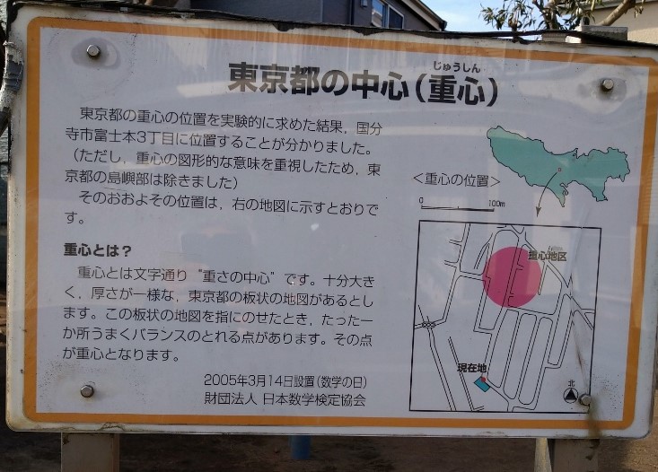 検定協会」が設置した『東京都の中心(重心)』