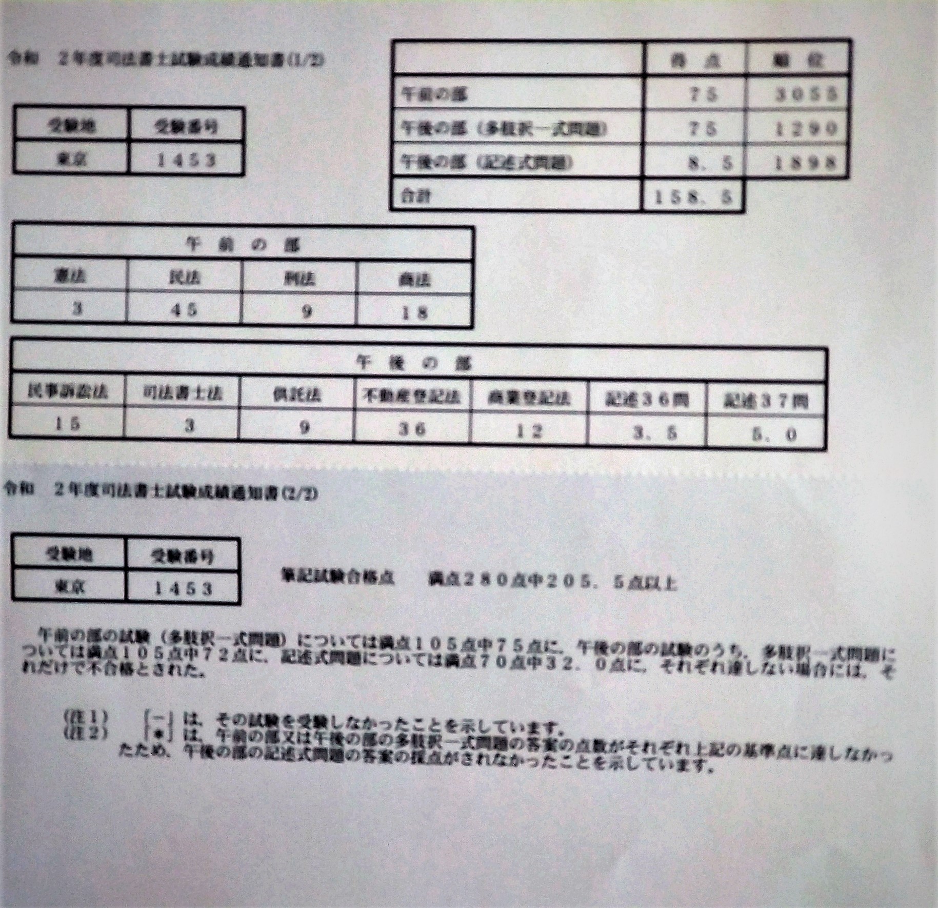 しかも、試験直後の予備校の模範解答を基にした自己採点では、不動産登記25点、商業登記10点くら