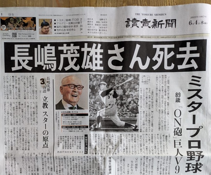 長嶋さんの訃報を聞いて、心にポッカリと穴が開いた